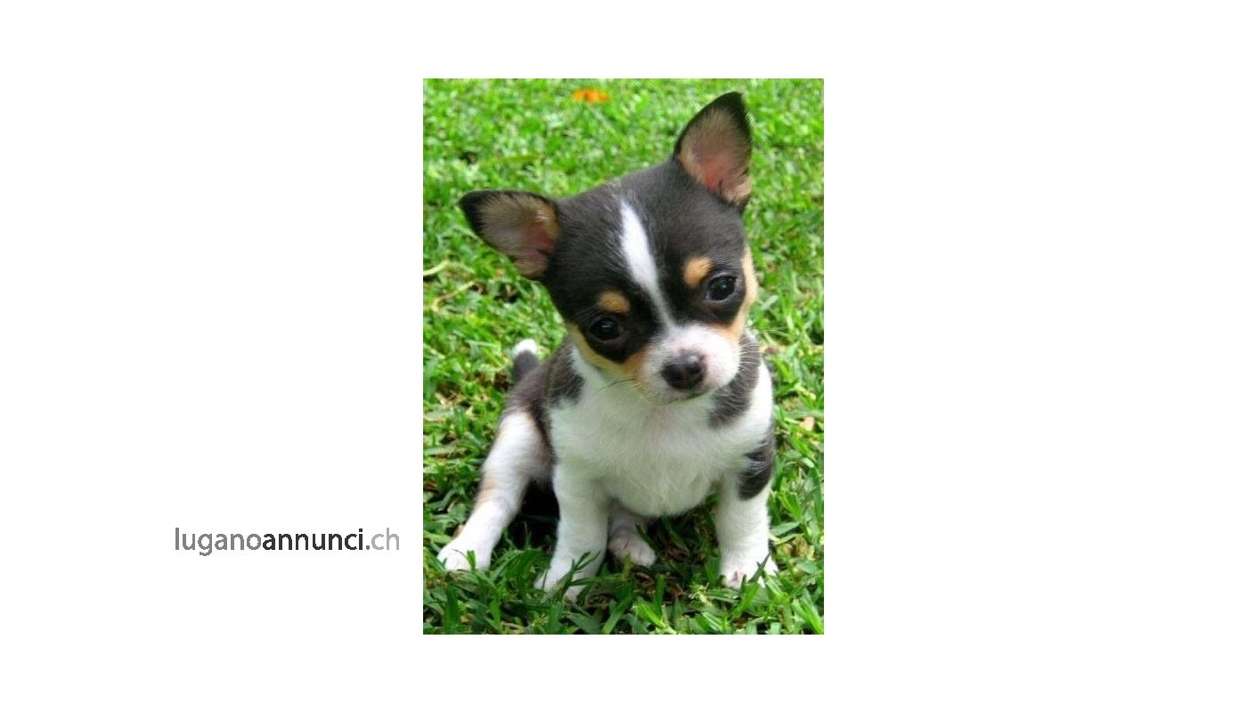 Maschietto di chihuahua, taglia toy, 3 mesi, manto cioccolato e bianco,